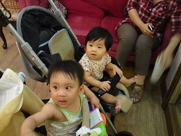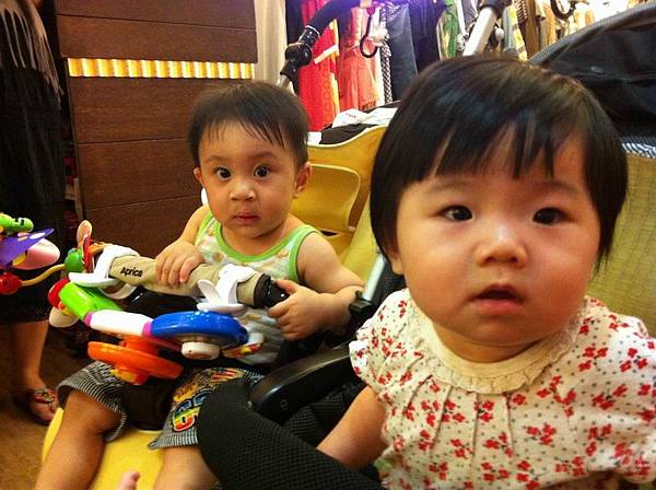 當我把小妤放在小福寶推車後面時....小福寶摸摸小妤....