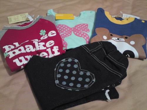 買了小妤三件長袖上衣及一件褲子...