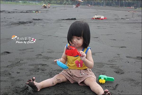因小妤還太小..所以我不敢讓她靠近大海...她就只能坐在那玩沙....