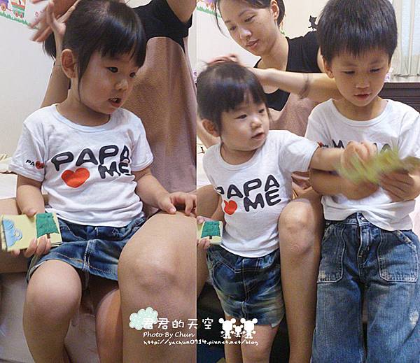 一個穿我愛爸爸...另一個穿我愛媽媽....